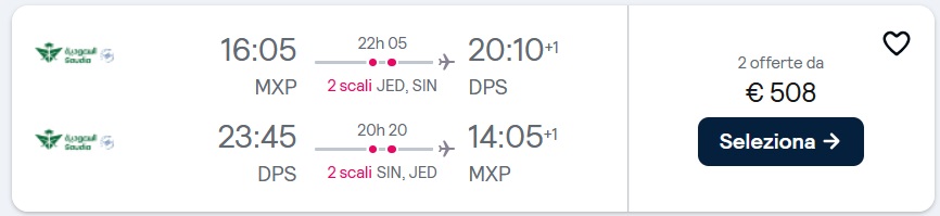 - 29 aprile – 7 maggio, 508 Euro con Saudi Arabian Airlines via Jeddah e Singapore